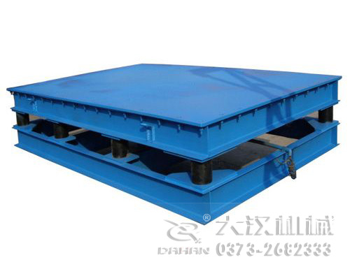 振動平臺又叫振實臺,主要用于物料的震實,減少物料內(nèi)的空氣和縫隙.一般和料倉配套使用。主要由臺面、底架、振動器、彈簧等部件組成,臺面與底架均用鋼板和型鋼焊接而成,小型振動平臺是直接采用振動電機。大型振動平臺可采用電動機 加一對相同的偏心輪組成。并通過一對吊架聯(lián)軸器安裝在臺面(反面)中心位置,起著振實過程中平穩(wěn)、垂直方向的作用。